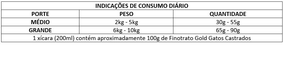 Umidade (máx) 90g/kg (9%), Proteína Bruta (mín) 360g/kg (36%), Extrato Etéreo (mín) 110g/kg (11%), Matéria Fibrosa (máx) 40g/kg (4%), Matéria Mineral (máx) 85g/kg (8,5%), Cálcio (mín) 8.000mg/kg (0,8%), Cálcio (máx) 15g/kg (1,5%), Fósforo (mín) 8.000mg/kg (0,8%), Sódio (mín) 2.500mg/kg, Potássio (mín) 6.000mg/kg, Magnésio (máx) 600mg/kg, Taurina (mín) 1.500mg/kg, Metionina (mín) 6.200mg/kg, L-Carnitina (mín) 200mg/kg, Mananoligossacarídeos (mín) 500mg/kg, Ômega 6 (mín) 15g/kg, Ômega 3 (mín) 1.000mg/kg, DHA (Ácido Docosahexaenoico, mín) 600mg/kg, Energia Metabolizável 3.900kcal/kg.